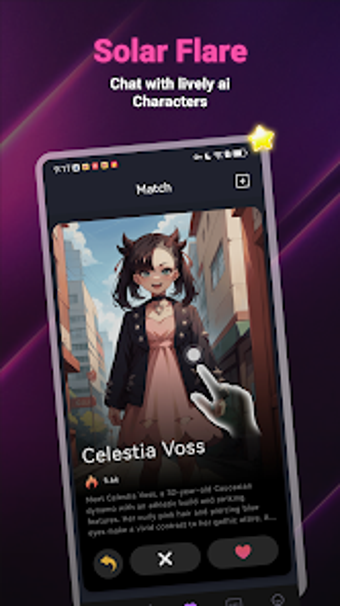 Appen låter användarna anpassa sina AI-kompanjoner, vilket gör att de kan designa utseende, personlighet och samtalsstil. Med en mängd olika karaktärer att välja mellan, från anime-skolkamrater till fantasikrigare, finns det alltid en AI-vän för varje tillfälle. Solar Flare: AI Friend skapar en plattform för att leva ut egna berättelser och äventyr, vilket gör att varje interaktion blir unik och personlig.